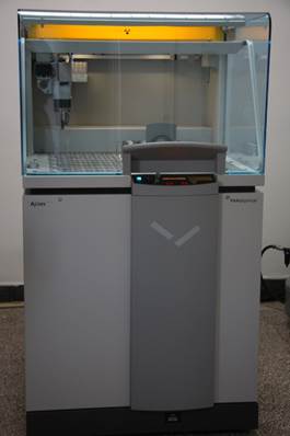 位置:地2楼1007 简介:本仪器为荷兰 PANalytical公司制,2011年6月完成安装调试,已验收并投入使用。用于地质样品常量及微量元素定量分析。仪器配备4.0 KW SST陶瓷超尖锐长寿命Rh靶X-射线光管(灯丝无挥发,Zeta专利技术);分光晶体:LiF 200 晶 体, PE 002 晶 体, PX-1 晶体, Ge 111 晶 体, LiF220 晶 体, PX-10晶体;可分析F-U间元素:常量(%)-微量(ppmm),精密度(主、次量元素)RSD%:0.1-1.0。计数线性:SC为1500kcps,FPC为3000kcps。动态长期稳定性:0.04%;定位准确性:0.00025度;定位精度:<0.0001度。
