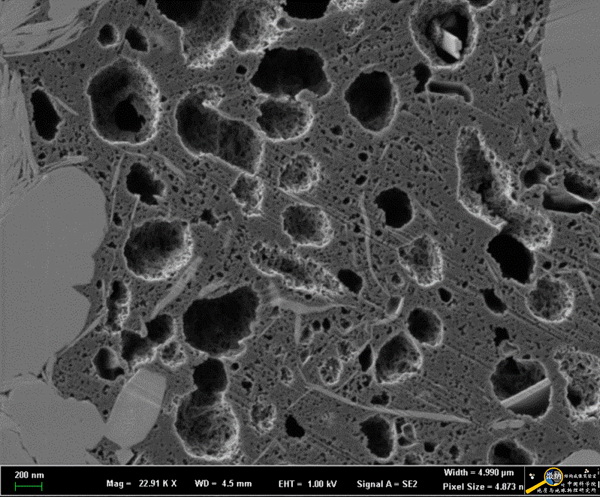 聚焦离子束-扫描电镜(Focused ion beam – scanning electron microscopy,FIB-SEM)是一款集高分辨场发射扫描电镜(SEM)的成像功能和聚焦离子束(FIB)的切割功能为一体双束系统,又可以用于对岩石中的矿物、有机质(或干酪根)和孔隙进行微米-纳米尺度的高精度的三维成像,又可以对其它材料做纳米加工,比如透射电镜样品制备,还可做晶体材料二维和三维EBSD。