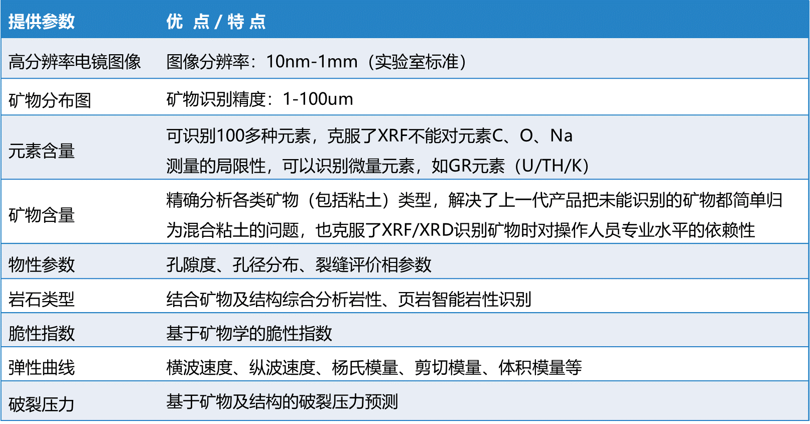 包括制样、矿物成分图、成分百分比、背散射图像、孔隙、力学参数 |