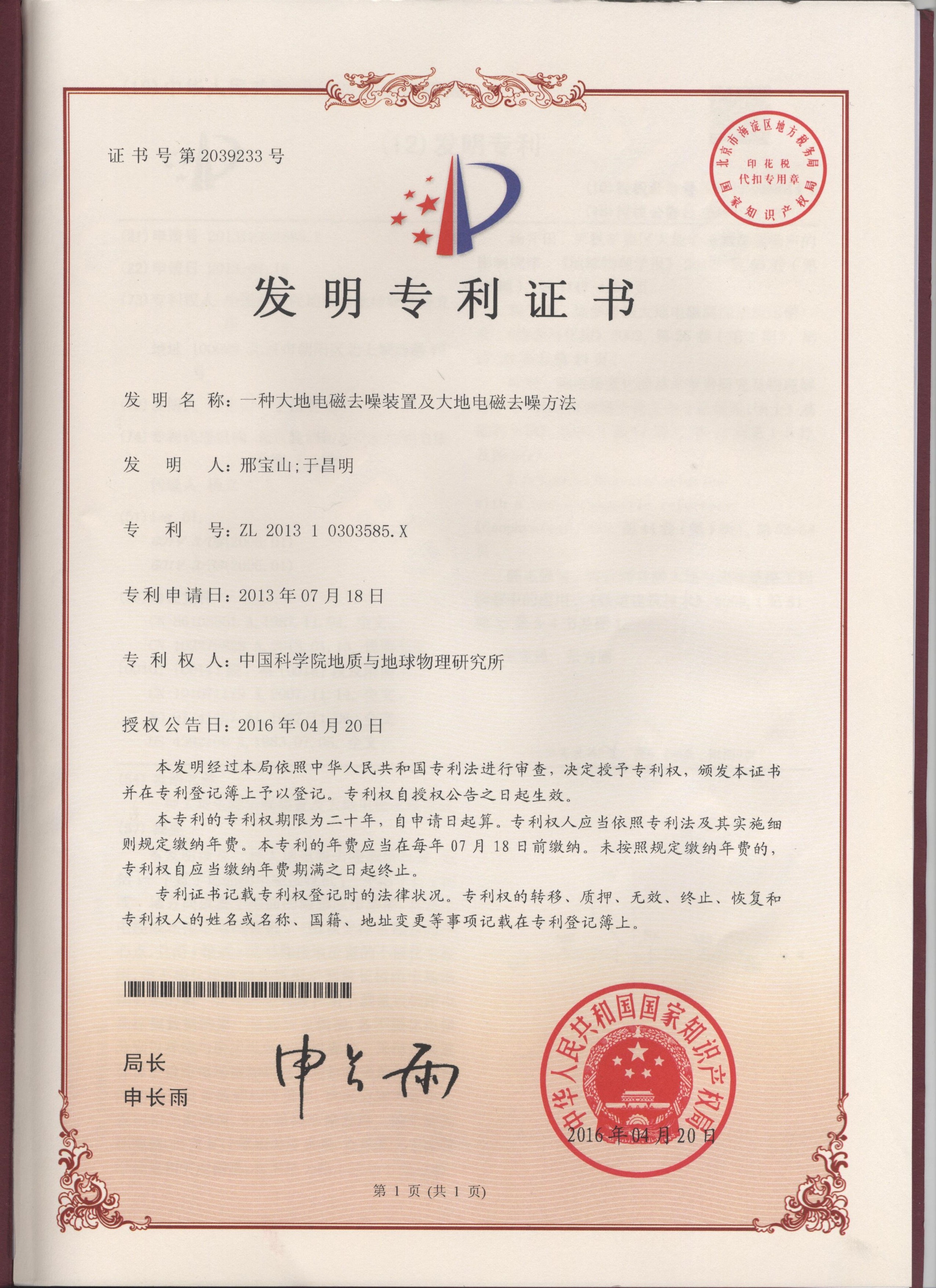 800彩票固体矿产室博士生邢宝山等发明了一种大地电磁去噪装置及大地电磁去噪方法,并于近期获得国家专利授权(专利名称:一种大地电磁去噪装置及大地电磁去噪方法;发明人:邢宝山,于昌明;专利号:ZL 2013 1 0303585.X)。他们从一种大地电磁去噪测量装置出发,通过相关分析方法,判断场源的性质(近场或远场),进而人工去除不同频点的干扰信号,从而获得可靠的远场电磁测量数据。