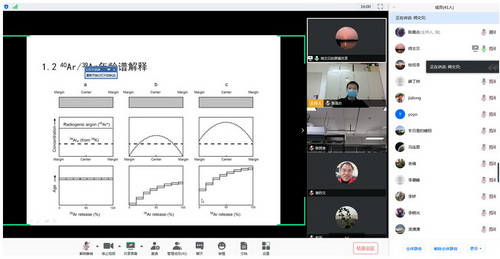 2020年4月30日,所级中心第26期“技术沙龙”邀请了氩氩、铀-钍-氦年代学实验室的师文贝工程师就蚀变黑云母40Ar/39Ar定年研究做专题报告。结合当前新冠肺炎疫情防控要求,本次沙龙继续采取视频会议方式开展。在报告中师文贝重点介绍了氩氩定年的相关原理与测试技术方法及其地质应用等内容,参会技术人员在交流研讨环节进行了热烈地讨论。随后,技术沙龙还对近期所级中心有关工作安排进行了梳理与部署。