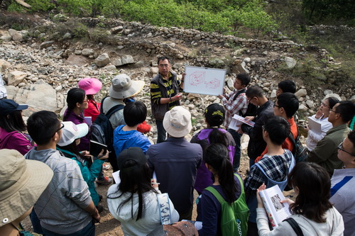 参加本次实习的博士和硕士研究生共40人,专业涵盖我所地质学、地球物理学、地质资源与地质工程三个一级学科和海洋地质学二级学科。中国科学院大学地学院侯泉林教授、吴春明教授、孙金凤博士参加了本次密云、怀柔地区的野外实习。实习过程中,我所吴福元院士、储雪蕾研究员、陈代钊研究员、林伟研究员、彭澎研究员分别为同学们进行了各类地质知识的讲解。