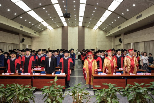 典礼在庄严的国歌声中开始。学位委员会主任叶大年院士首先宣读了《800彩票学位委员会2018年夏季学位授予决定》,建议授予栾晓东等79名同学博士学位,授予刘建光等35名同学硕士学位。