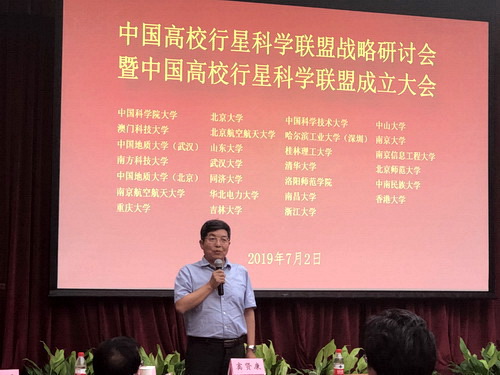 侯增谦在致辞中表达了国家自然科学基金委对我国行星科学发展的支持和期望。侯增谦指出,中国高校行星科学联盟的建立,将有助于推进解决中国行星科学人才培养问题、科学前沿问题和发展战略问题。联盟应当成为共享深空探测和行星科学研究成果的平台,通过平台协同创新共攀行星科学高峰。