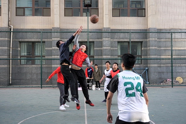 异边再战,我方加快了进攻的节奏,由张驰等后卫群发起的快速反击接连得手,每次抢断或篮板球都直接精妙地传给快下的队员,并稳稳打进。大气所在意识到这一点后制定了明确的防快攻策略,并卓有成效。在进攻端,他们选择了更多的中投,凭借较高的命中率紧咬比分。后期,大气所进行了人员调整,内线球员依靠坚实的脚步和强壮的身体不断得分,我方也换上了徐涛老师,徐老师凭借广阔的视野,送出了一次又一次精妙的传球,折服了场上的球员和观众。就算到第四节的最后一刻,双方仍然没有放松,打出了真正的篮球精神。最终我所以微弱的优势获得了比赛的胜利。