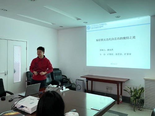扈永杰同学以《解析新元古代白云石独特之处》为题,从白云石的成因存在很大的争议作为切入点,为大家介绍了显生宙次生白云石的形成过程、新元古代原生白云石的成因及其古环境意义,并提出了个人研究工作的创新点,提出原生白云石的概念,丰富了前人的观点以及纤维状白云石形成于海水到海相孔隙水的环境的证据。