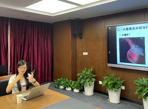 柴立晖以《火星和天问一号的一些科普》为题为研究生作科普讲座。她主要介绍了一些火星和天问一号的基本情况,首先回顾了火星之前的一些苏联、美国和欧洲的探测计划,然后介绍对火星的形成过程、大气演化、气候转变和磁场等研究情况,以及相关方面的一些研究热点,最后介绍了天问一号携带的仪器及其对这些科学问题的探索。
