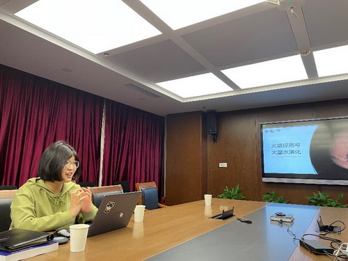 何会存以《火星探测与火星水的演化》为题,讲述了火星水存在的证据及其演化研究的重要性,并结合火星探测及陨石研究,介绍了火星的地质背景及火星水形成演化的地球化学方面研究,最后展望了“天问一号”探测将为火星水研究带来的前景。