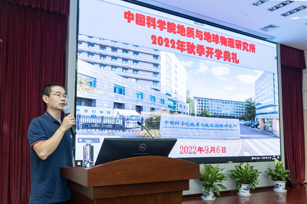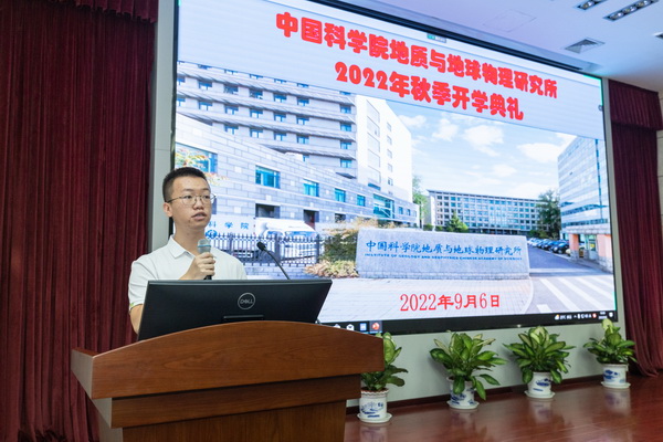 典礼在庄严的国歌声中拉开序幕。张小雷代表研究所向2022级全体新生表示欢迎,详细介绍了研究所的发展历史、学术贡献、学科布局以及未来发展规划等,希望同学们发扬传承前辈科学家精神,肩负起新时代赋予的职责使命,同时对新生疫情防控、身心健康等提出要求。