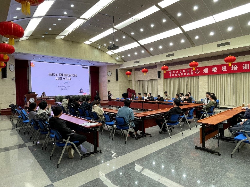 为帮助心理委员和学生干部明确工作定位、增强理论知识基础、提升心理健康工作能力,进一步促进心理健康工作的开展,2023年4月24日晚,由国科大心理健康教育中心主办、我所承办的2023年春季学期心理委员培训讲座第四讲《高校心理健康活动的开展与实施》在我所举办。本次培训讲座邀请了首都师范大学蔺桂瑞教授主讲。