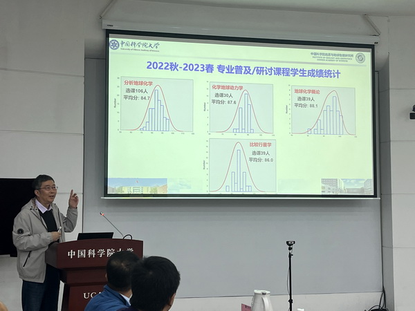 2023年10月21日,中国科学院大学(以下简称国科大)地球与行星科学学院(以下简称地星学院)在国科大玉泉路校区召开2023年度秋季学科建设与教学研讨会。我所副所长、国科大地星学院副院长魏勇研究员,李献华院士,国科大地星学院党委书记、副院长周元泽教授以及教研室主任、教师代表和部分位教育管理干部计40余人参会。