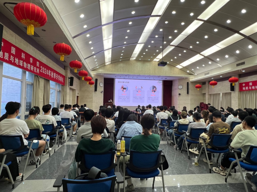 8月30日上午9:30,我所在地3楼二层报告厅举办开学典礼。副所长赵亮研究员代表研究所向2024级全体新生表示欢迎,并详细介绍了研究所的发展历史、学术贡献、学科布局以及未来发展规划等。导师代表戎昭金研究员给予新生几点建议,希望同学们坚持不懈、不断成长,积极主动学习新知识、拓宽视野,真正做到“知行合一”。在开学典礼上,郝天珧研究员讲授“开学第一课”《石樵精神——刘光鼎先生学术思想与传承》,通过讲述刘光鼎先生事迹,勉励同学们继承和发扬老一辈科学家精神,是一次生动的思想品德教育。