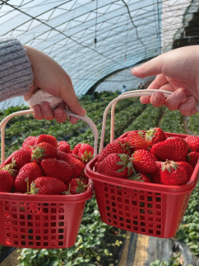 下午13:00到达草莓园开始采摘草莓活动。在草莓大棚内,大家与大自然亲密接触,亲身感受草莓的生长环境,寻找自己心仪的草莓,随着篮子里的草莓越来越多,有一种劳动带来的满足感和成就感。通过采摘活动,大家愉悦了身心,享受了劳动的快乐。
