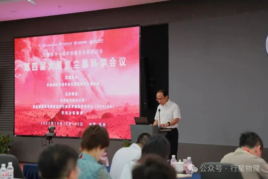 为了推动行星科学学科发展,服务于国家深空探测需求,第四届火星沙尘暴科学会议于2025年10月10日至13日在浙江省杭州市召开。出席开幕式的主要嘉宾有北京航空航天大学杭州国际创新研究院院长董卓宁,中国科学院可持续发展局副局长魏勇,以及中国地球物理学会行星物理专业委员会主任何建森教授、秘书长乐会军研究员等。开幕式由北京航空航天大学宋文佳教授主持。