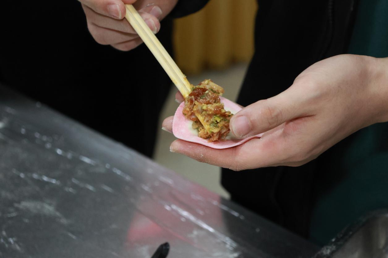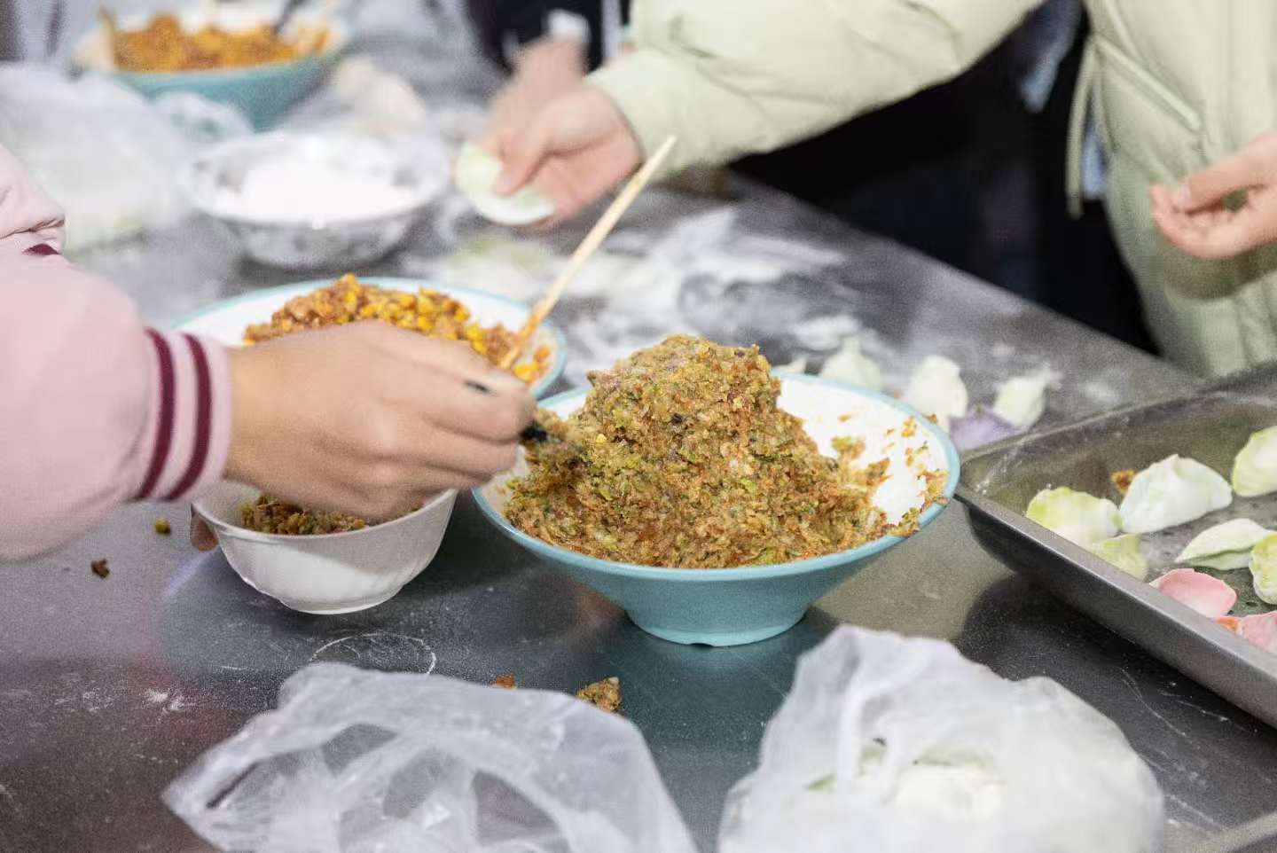 12月19日下午4点,同学们陆续抵达活动现场。工作人员有序引导大家清洁手部,提醒食品安全注意事项,保障食品安全和卫生。为同学们精心准备猪肉大葱馅、玉米猪肉馅、韭菜鸡蛋馅等多种馅料。