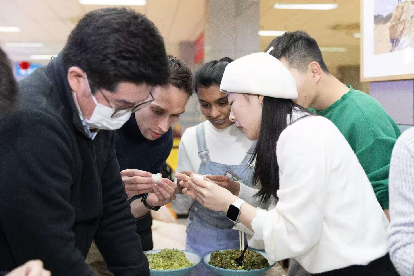 活动现场更有不少外国留学生参与其中,研究生会的学生干部主动热情地向他们介绍冬至吃饺子的传统习俗,手把手教他们擀皮、包馅。留学生们兴致盎然地跟着模仿,尽管动作略显笨拙,包出的饺子形态各异,但在一次次尝试中逐渐找到技巧,脸上满是成就感。大家以饺为媒,让跨文化的友好之花在800彩票绽放。