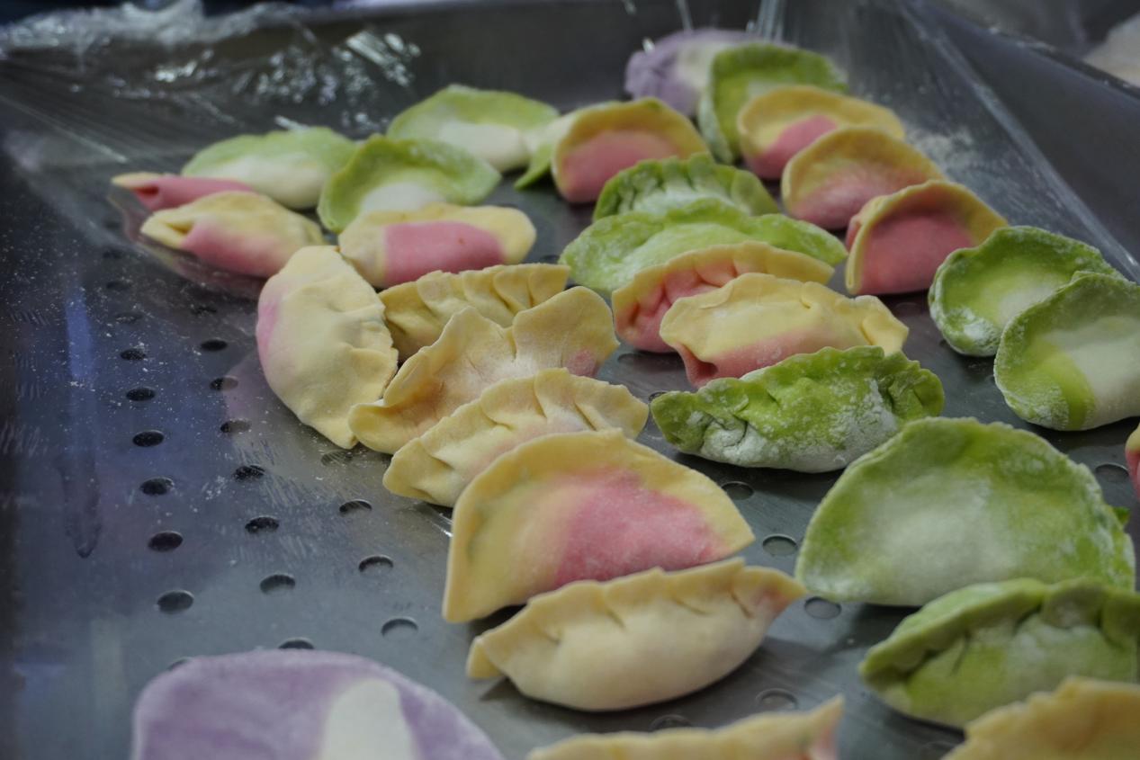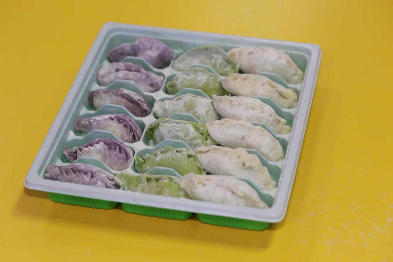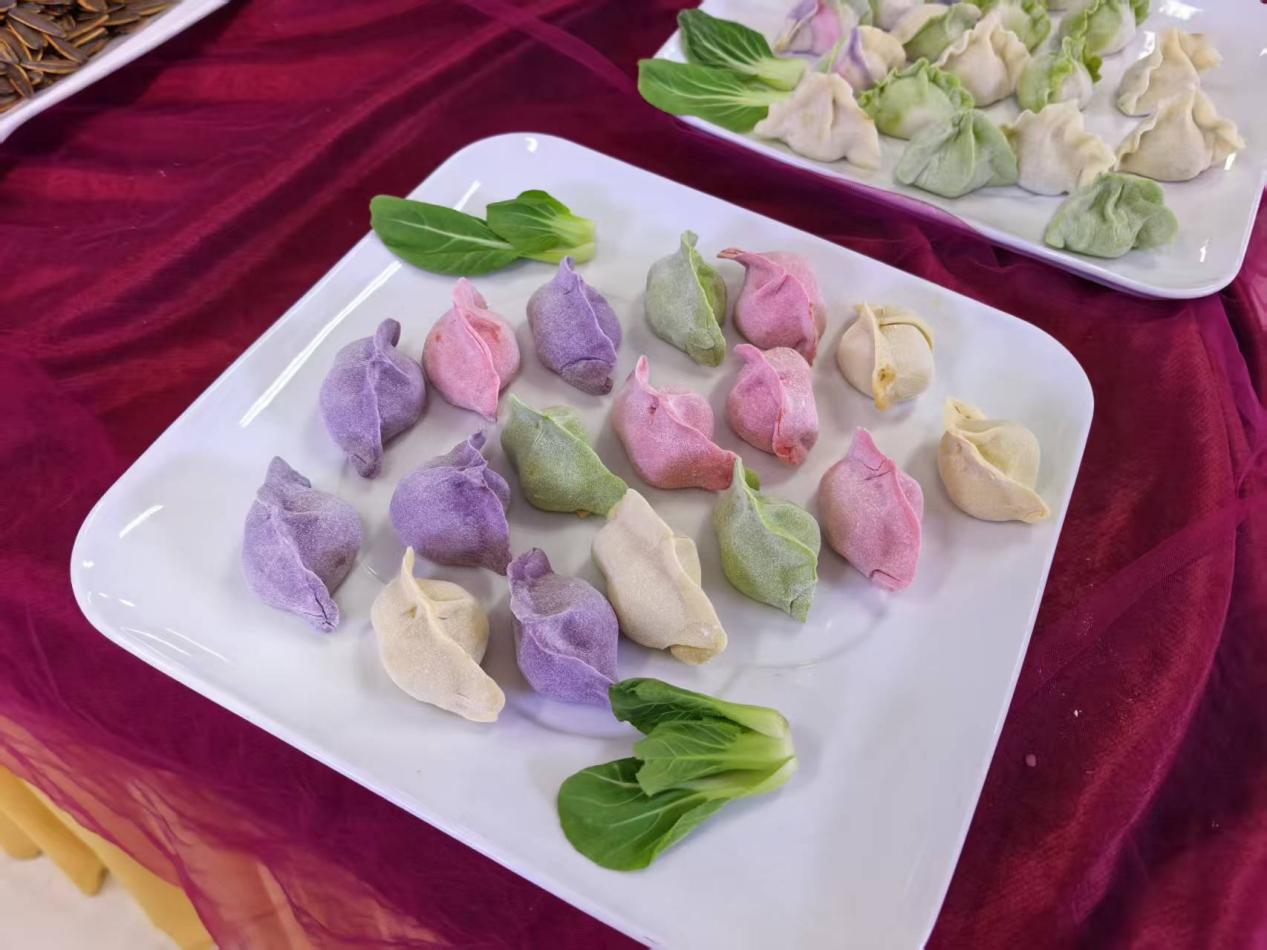 工作人员特意为同学们准备了小礼物和搭配饺子的清爽小菜。