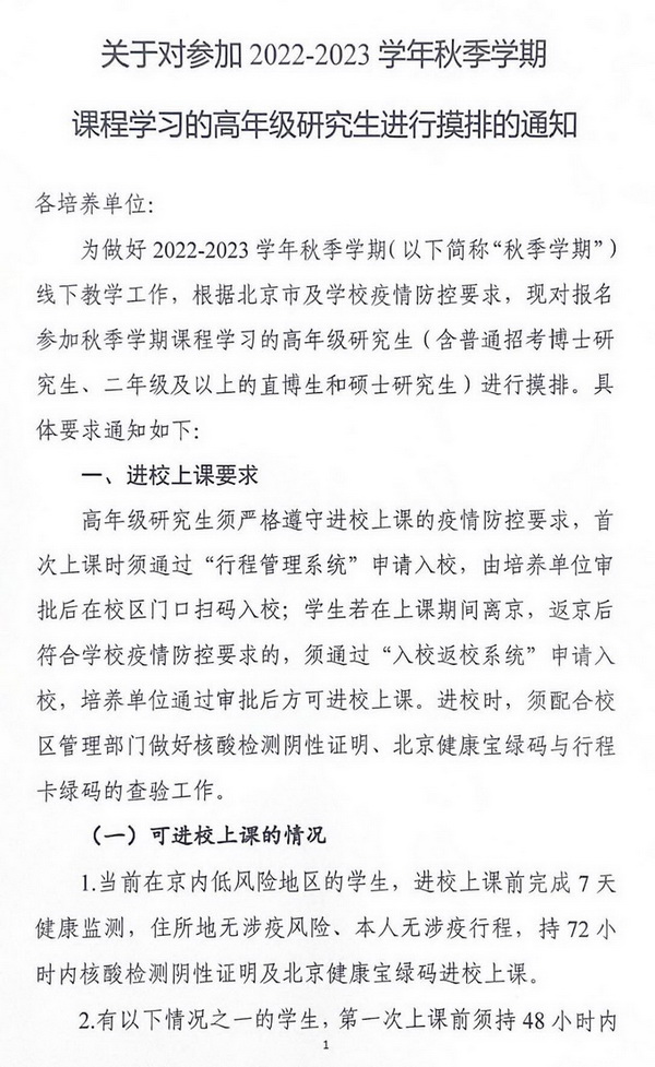 关于对参加2022-2023学年秋季学期课程学习的高年级研究生进行摸排的通知