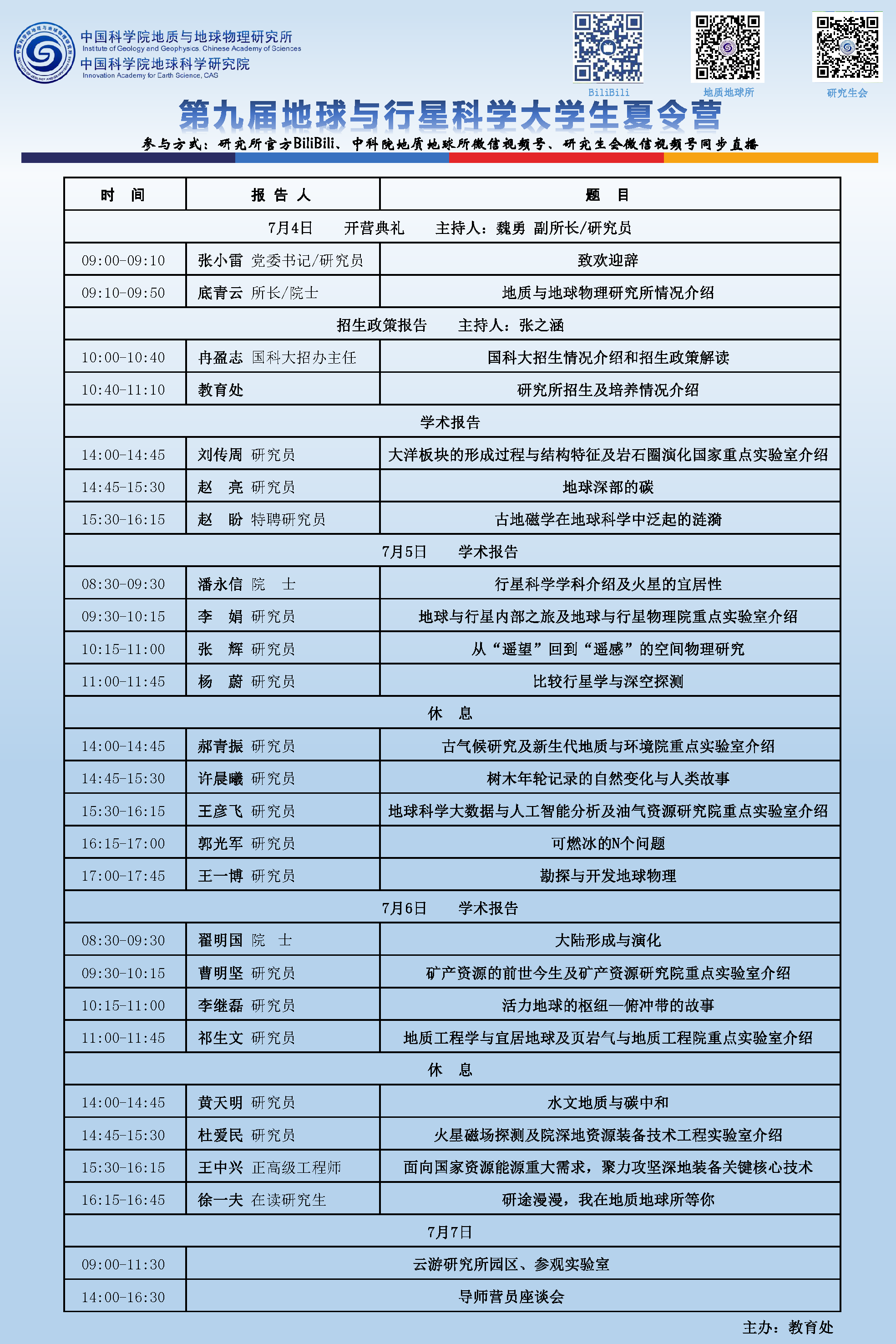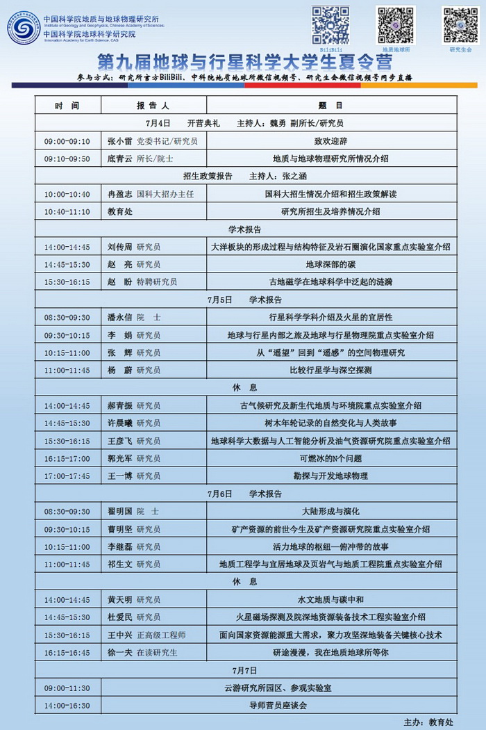 【7.4-7.7】第九届地球与行星科学大学生夏令营