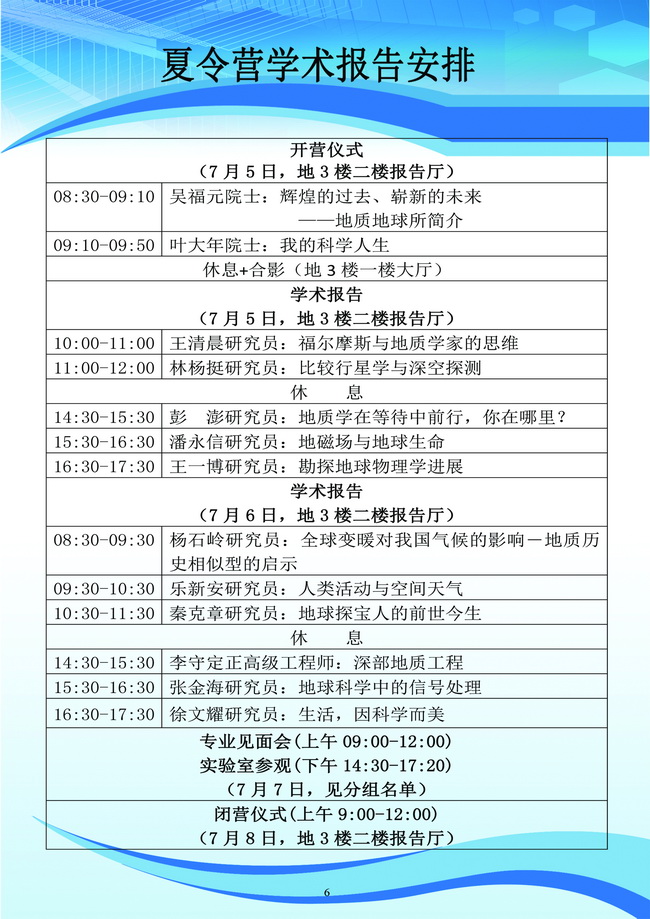 【7.4-7.8】第三届地球与行星科学大学生夏令营日程及学术报告安排