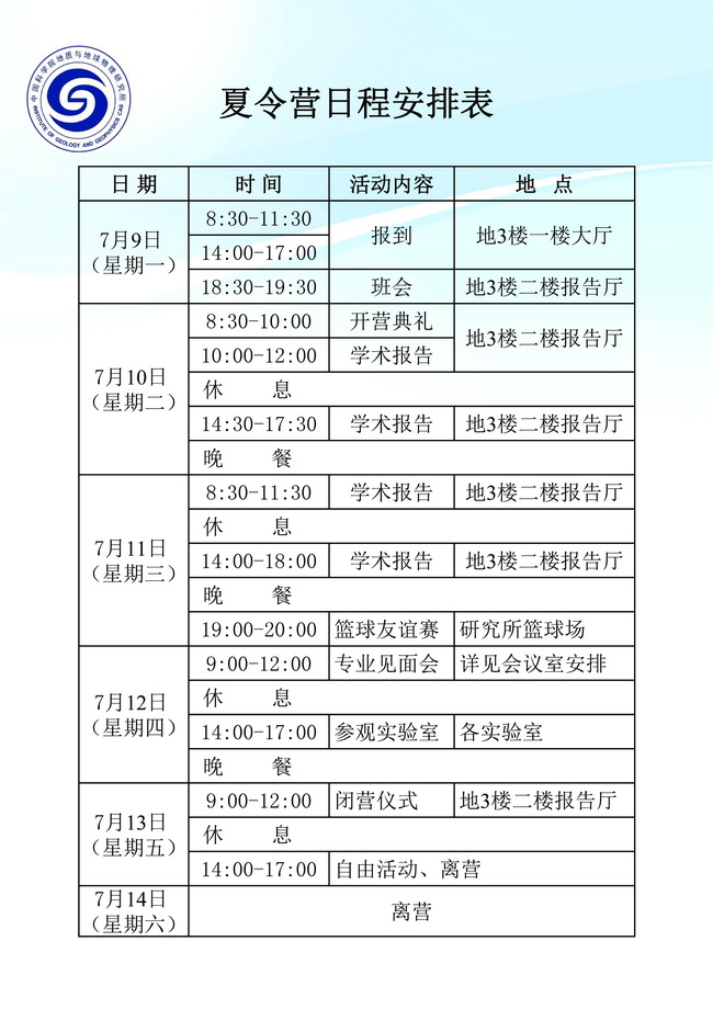 【7.9-7.13】第五届地球与行星科学大学生夏令营日程及学术报告安排