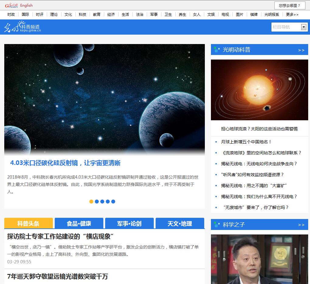 中国科普网由国家科技部政策法规与体制改革司主办,网站以青少年为主要对象,兼以向全社会发布科技信息、进行科学普及,以提高全民科学素质为宗旨,是一个综合性科普网站。