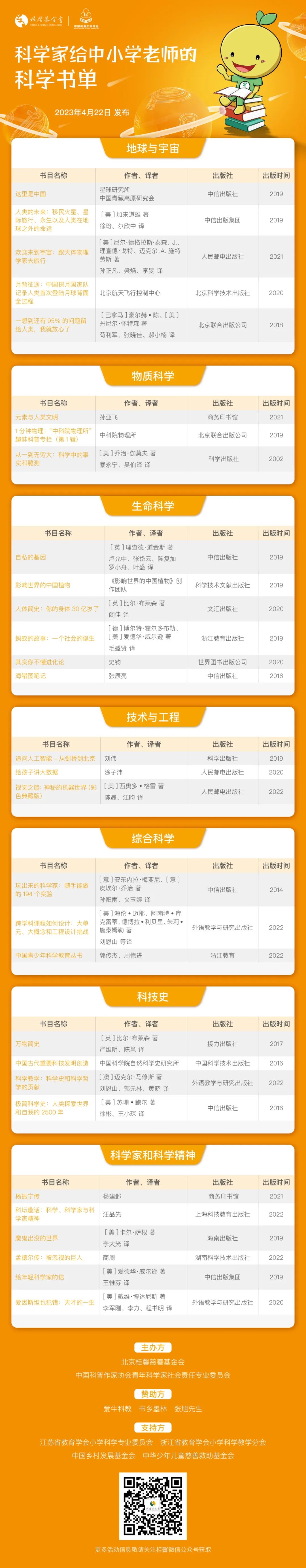 在4月23日世界读书日到来之际,“科学家给中小学老师的科学书单”正式发布了。