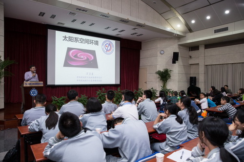 活动特邀万卫星院士针对太阳空间环境、行星空间环境、地球空间环境作了题为“太阳系空间环境”的科普报告。万卫星院士通俗、生动的讲解激发了同学们极大的兴趣,同学们在随后的互动环节提出了富有专业性和想象力的问题,现场气氛活泼热烈。报告后,同学们在志愿者的带领下参观了研究所实验室。