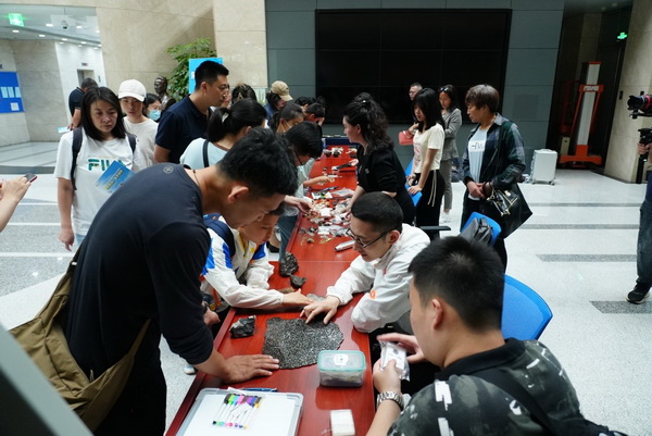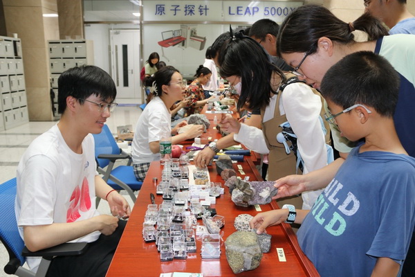 所史陈列馆、刘东生院士纪念展室也吸引了参观者的目光,有力地弘扬了科学家精神。博物馆、地震仪科普展示平台、石笋与树轮、“三大岩”科普桌、矿晶展台前也是人头攒动。特邀前来参加本次公众科学日活动的国内知名陨石收藏家雷克斯先生及团队,不仅科普展示了神秘的天外来客—陨石,而且还向每一个参与者赠送了一颗西北非石陨石或玻璃陨石(雷公墨)标本。