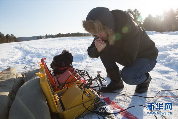 2月1日,在漠河县北极镇雪地上,科研人员使用自主研发的地面电磁探测系统探测地下结构,在寒冬中调试设备,呵气温暖双手。时下正值隆冬,800彩票漠河空间环境野外观测站的科研人员在零下数十摄氏度的严寒环境中开展科研工作。据了解,800彩票漠河空间环境野外观测站位于黑龙江省漠河县北极镇北约1公里处,是我国最北端开展空间环境观测的地球物理野外台站,对于观测研究我国空间环境扰动及传播具有重要作用。新华社记者 金立旺 摄