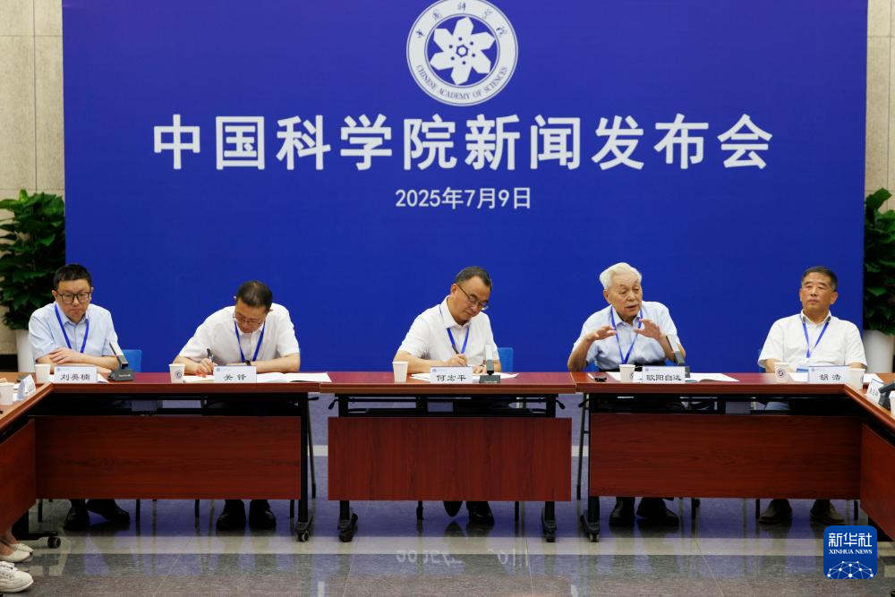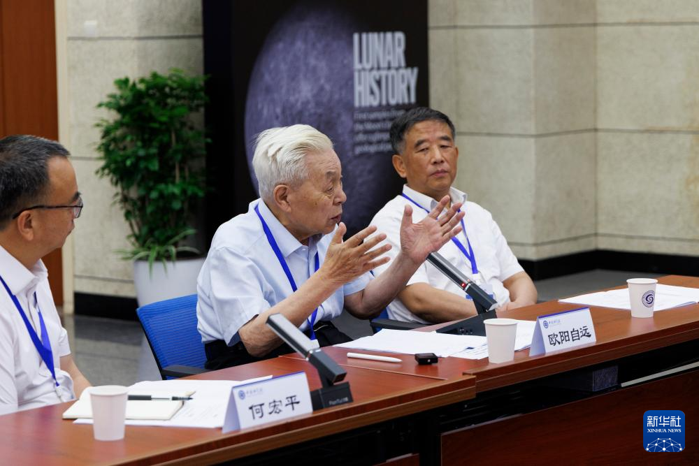 7月9日,在中国科学院召开的新闻发布会上,欧阳自远院士(右二)做专家点评。新华社记者 金立旺 摄
