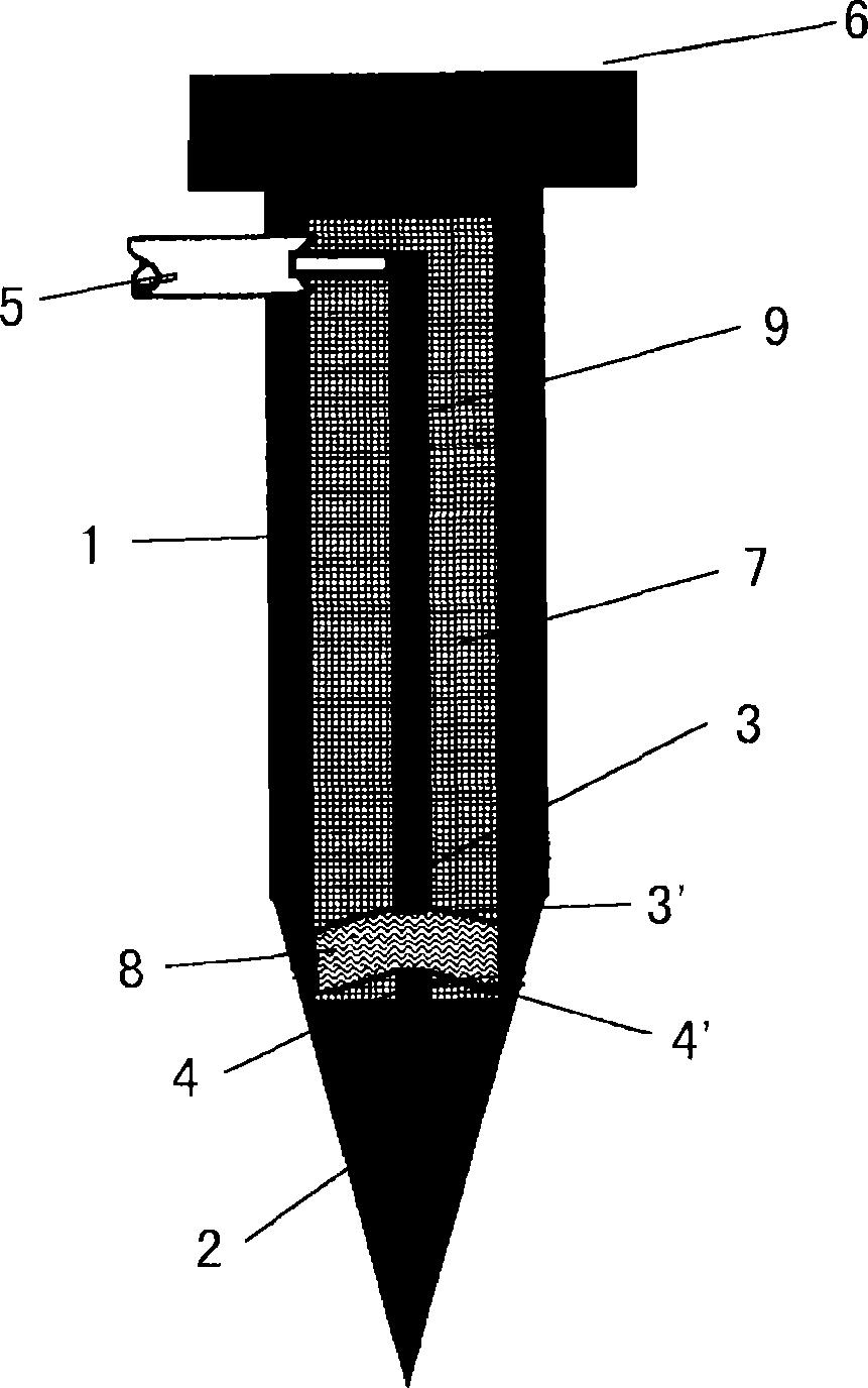 一种用于地震勘探的相控阵电火花子震源,其主要结构为:一下端为锥体的金属壳体,壳体内部设有高压电极,该高压电极连接高压电源同轴电缆;与该高压电极正对应的设有低压电极,该低压电极固定在锥体上;高压电极与低压电极相对的电极端各设计成相互平行的板状电极,两个板状电极之间设有电解液。本发明的子震源中自带少量水,不依赖环境水。本发明的电火花子震源在实际使用时,由多个成阵列分布的子震源组成,高压电极和低压电极都处于电火花子震源的壳体中,由封闭的空间形成液中放电腔室。并将高压电极和低压电极设计成抛物线形状,使放电中心位于抛物线的焦点处,这样所产生的能量大部分能向地下传播。
