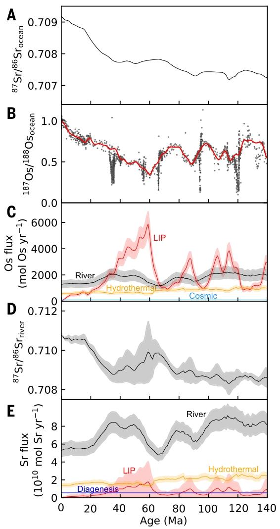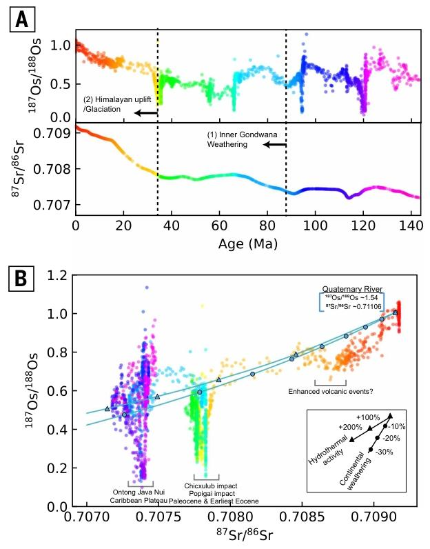 Matsumoto H, Watanabe Y, Coccioni R, et al. 143–million-year seawater osmium isotopic record: Trends, rhythms, and dynamics of volcanism and tectonics[J]. Science, 2026, 391(6783): 389-393.(原文链接)