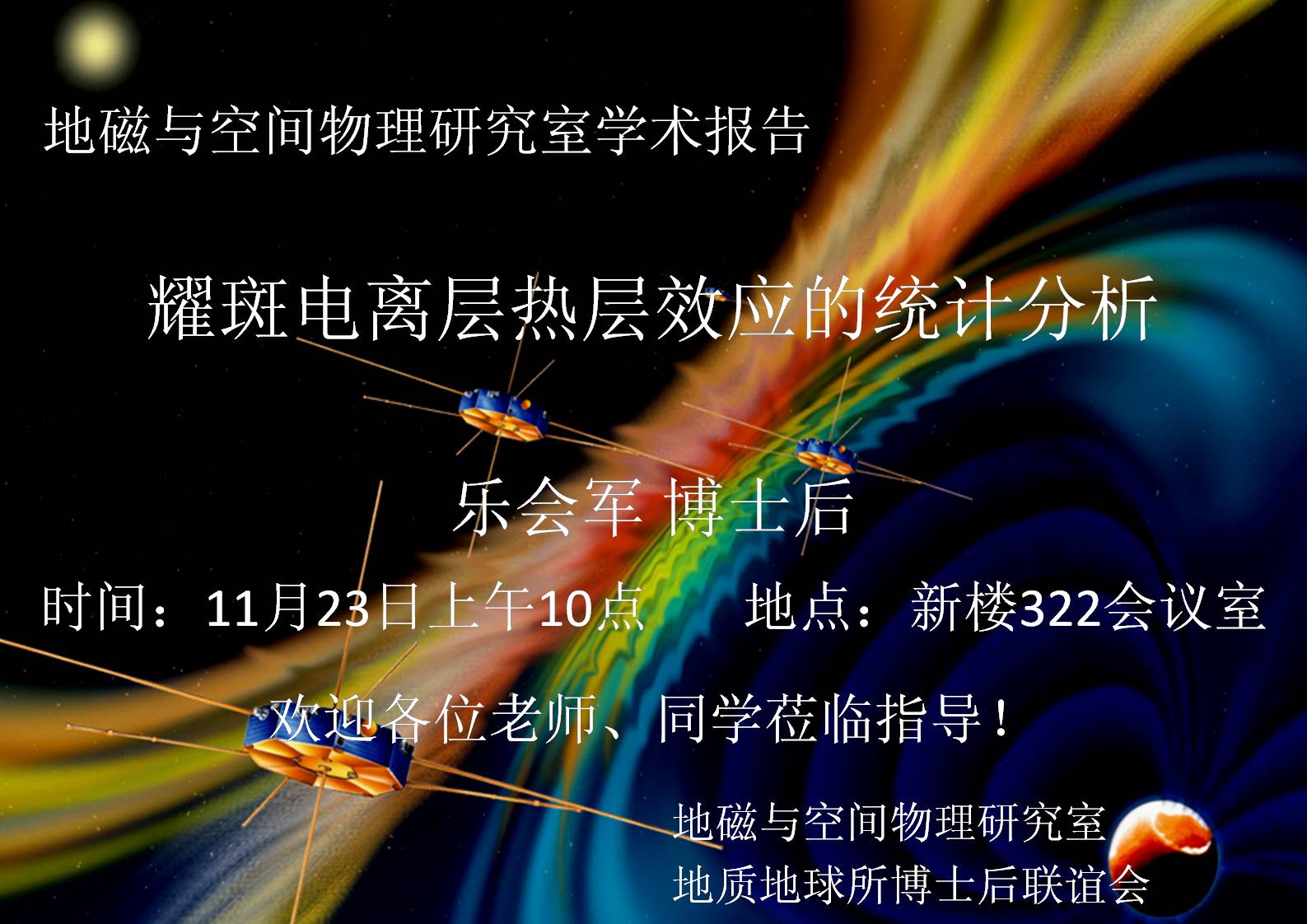 11月23日地磁与空间物理研究室乐会军博士后学术报告--耀斑电离层热层效应的统计分析
