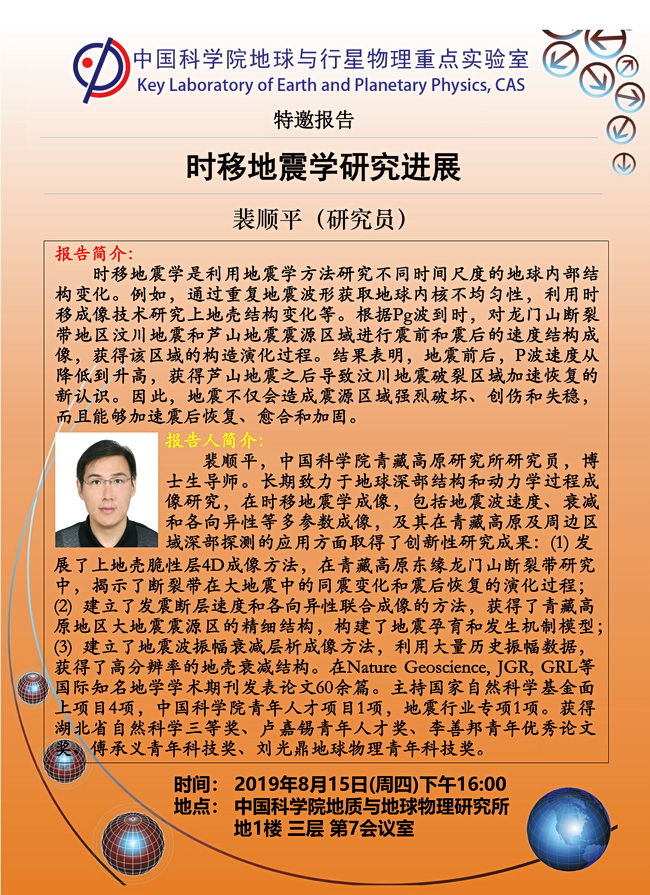 【8.15】地星室特邀报告:谢小碧 研究员,裴顺平 研究员
