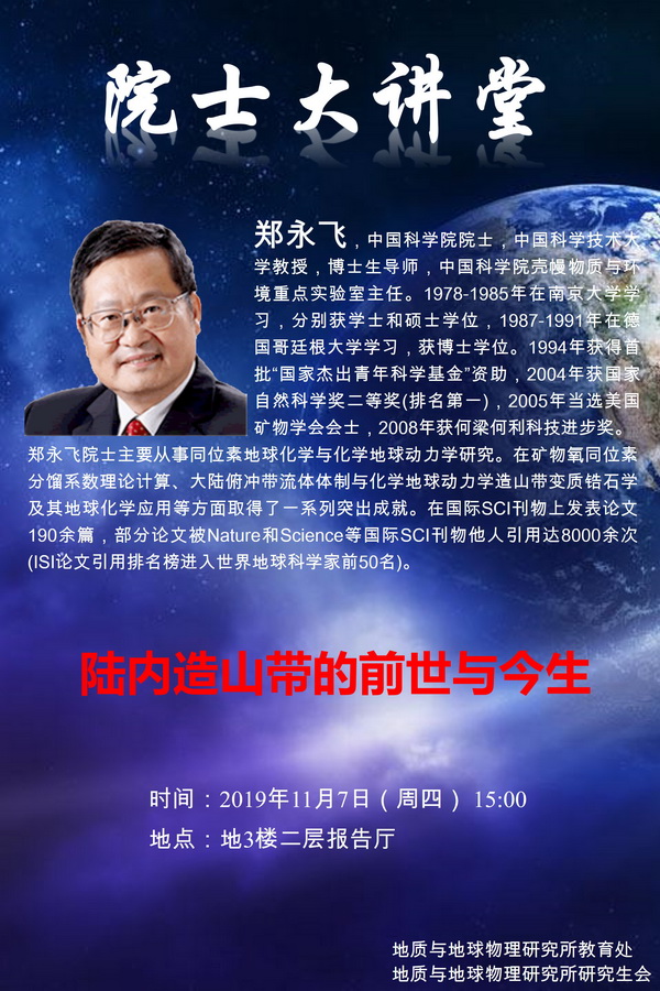 【11.7】院士大讲堂:郑永飞 院士