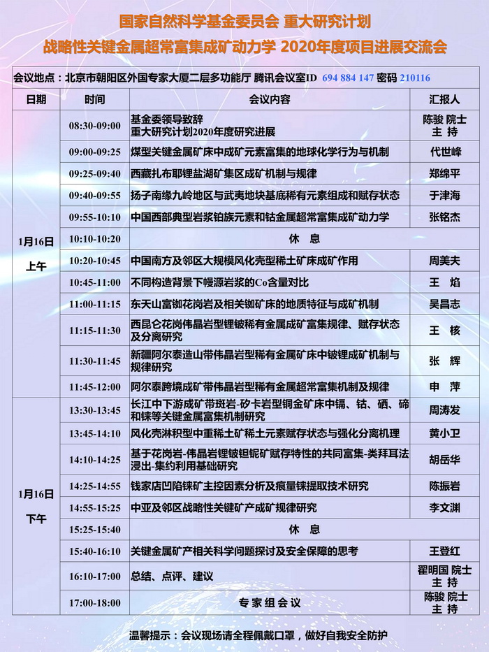 【1.16】“战略性关键金属超常富集成矿动力学”2020年度项目进展交流会