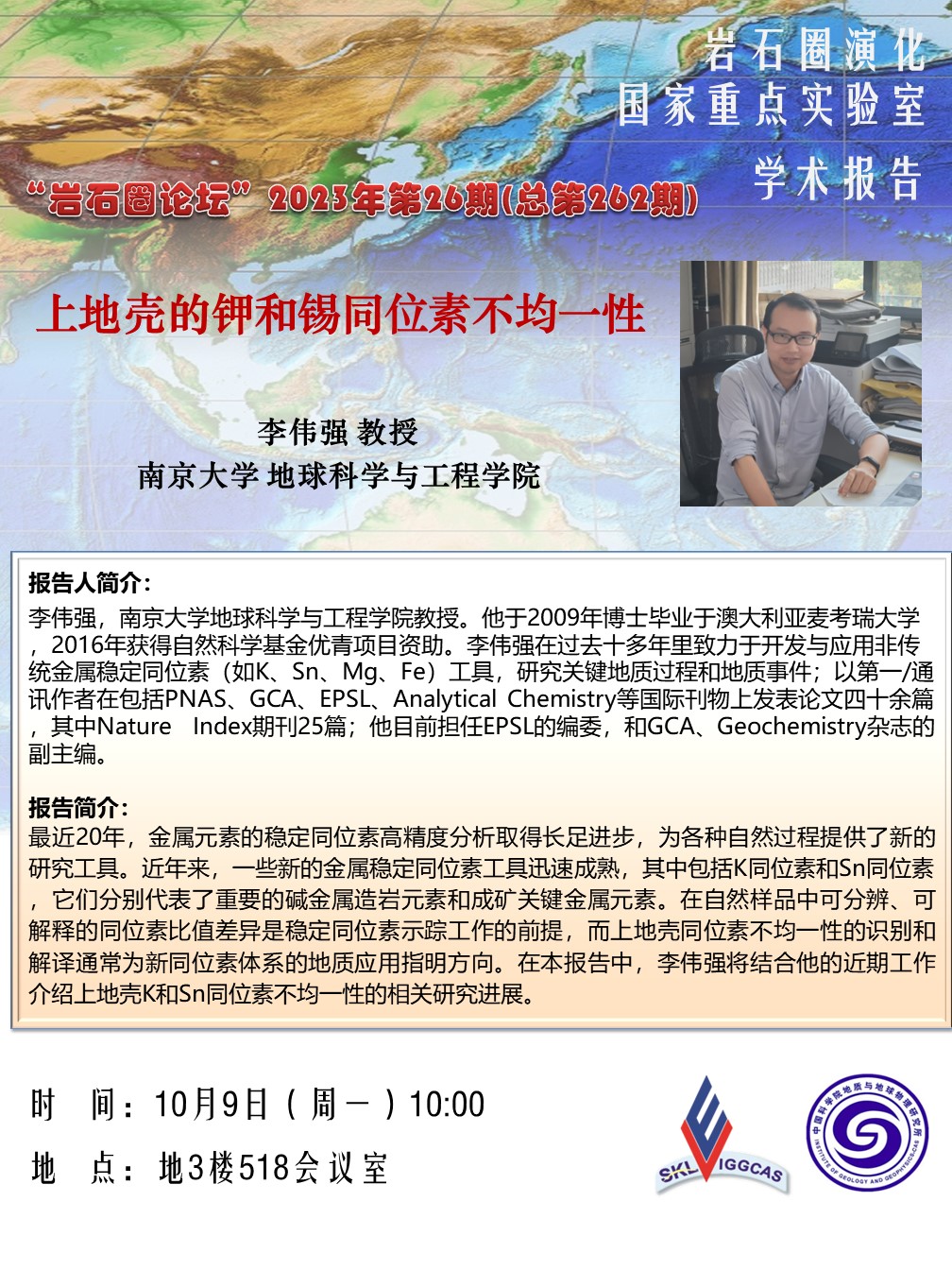 【10.9】岩石圈论坛:李伟强 教授