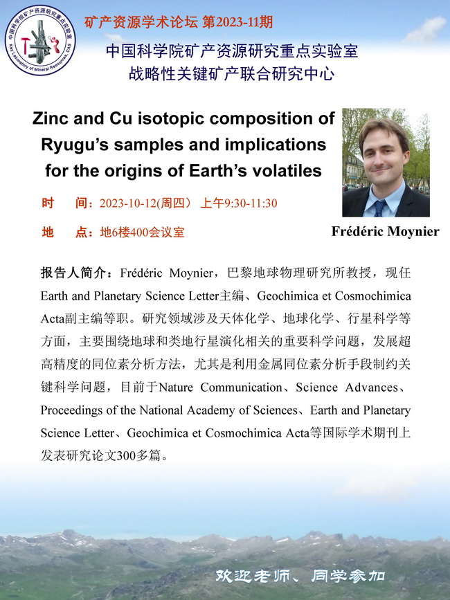 【10.12】矿产资源学术论坛:Frederic Moynier 教授