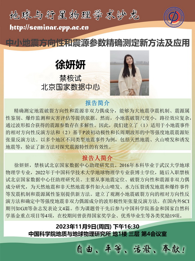 【11.9】地星室特邀报告、学术沙龙:杨英杰 教授;徐妍妍 助理研究员