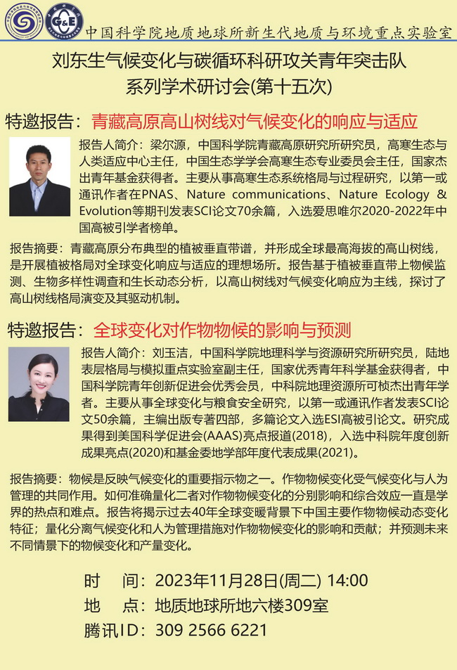 【11.28】刘东生气候变化与碳循环科研攻关青年突击队系列学术研讨会·第十五次