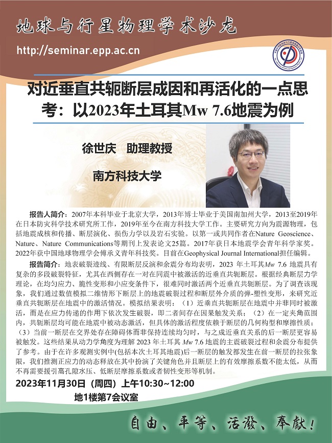 【11.30】地星沙龙:徐世庆 助理教授