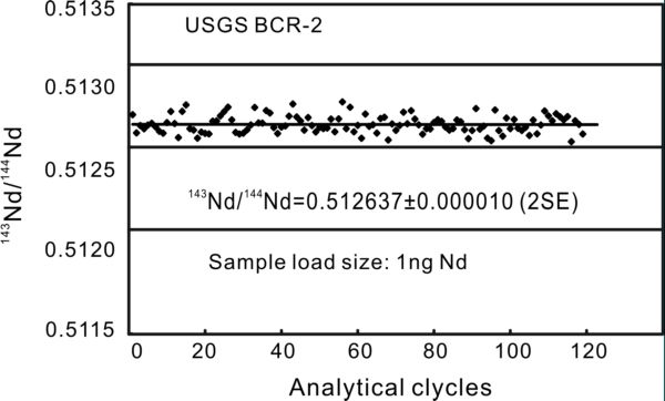 该分析方法最近已发表于国际著名的分析化学刊物Jounal of Analytical Atomic Spectrometry(2008IF: 4.03)(Chu et al. Precise determination of Sm, Nd concentrations and Nd isotopic compositions at the nanogram level in geological samples by thermal ionization mass spectrometry. Journal of Analytical Atomic Spectrometry,2009, 24: 1534-1544,点击此处下载该文)。该方法的建立将为超镁铁岩Sm-Nd同位素研究、石榴子石Sm-Nd定年、陨石Sm-Nd同位素研究及古海水Sm-Nd同位素研究等提供新的研究手段。
