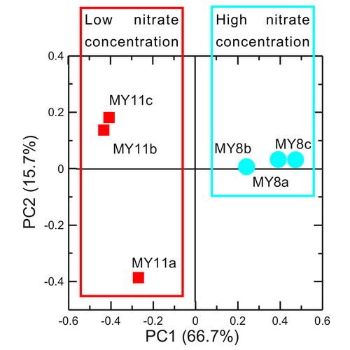 图注:北京密云水库趋磁细菌多样性时空变化的主成分分析
