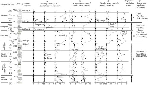 图1:库车盆地砂岩碎屑矿物-地球化学成分与碎屑锆石年代学记录及物源演化信息