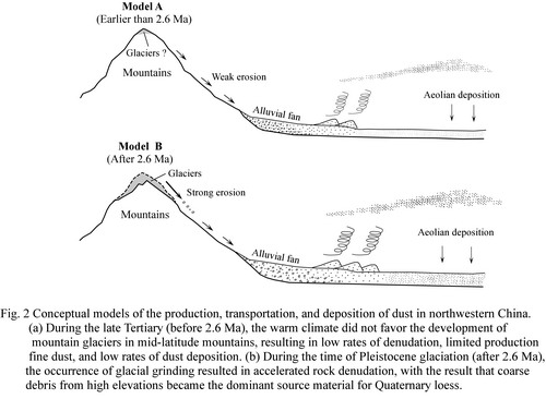图2 中国西北部风成沉积物在2.6Ma前后来源物质发生改变的模式示意图