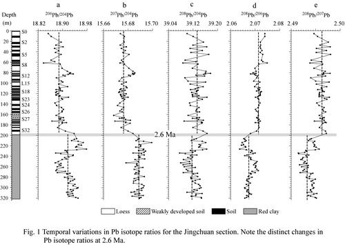 注意在2.6Ma左右Pb同位素组成发生了明显变化