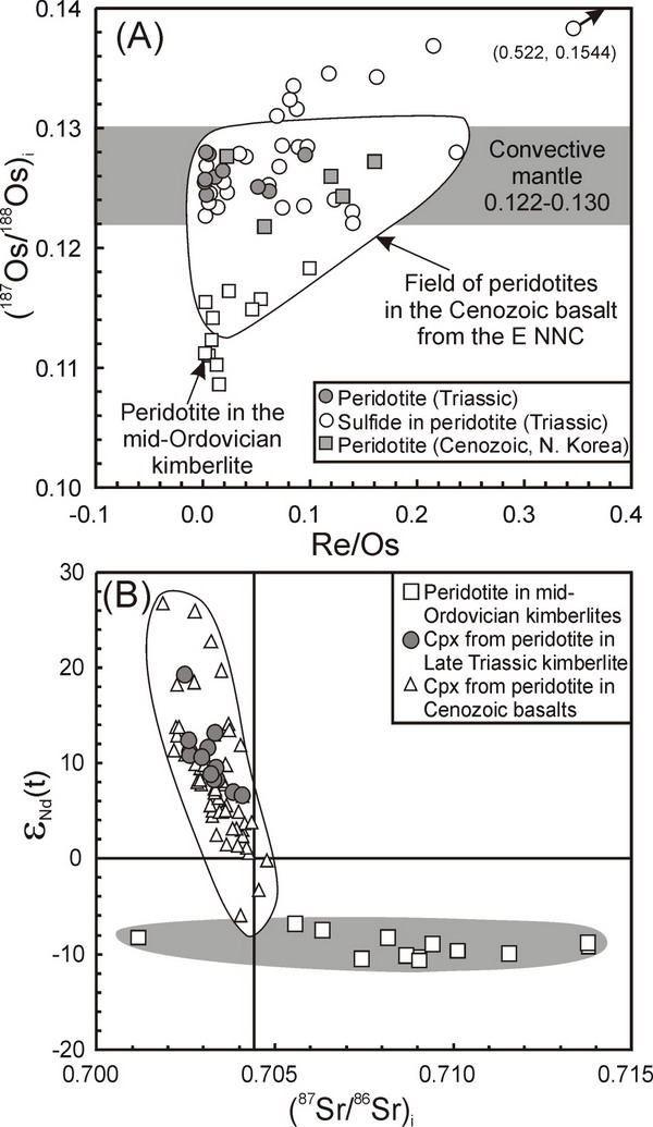 克拉通(Craton)是由上部前寒武纪地壳和下部巨厚、冷的、耐熔的岩石圈地幔组成,自克拉通形成之后一般不会再有强烈的岩浆-构造活动和显著的大陆地壳的生长。然而,大量的地球物理和地球化学研究表明,中朝克拉通东部中国大陆之下的古老岩石圈地幔在侏罗纪-早白垩世期间被新生的岩石圈地幔所代替,并伴有强烈的岩浆-构造-热事件和大陆地壳的生长。但整个中朝陆块之下岩石圈地幔改变的时空范围和机制却一直存在着很大争议。探索这一问题的关键是全面理解中朝克拉通岩石圈地幔的时、空演化。朝鲜位于中朝陆块的最东部,深入了解该区岩石圈地幔的性质和演化是探索中朝克拉通破坏的时、空范围和机制的关键。