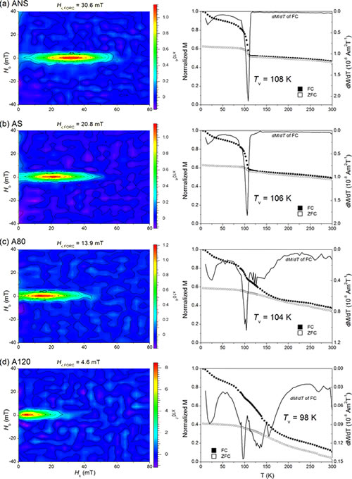 图2:AMB-1全细胞样品的常温一阶反转曲线图和低温磁学测量曲线