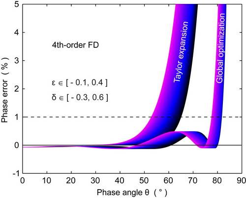 Geophysics:强各向异性条件下有限差分波场延拓算子的全局优化